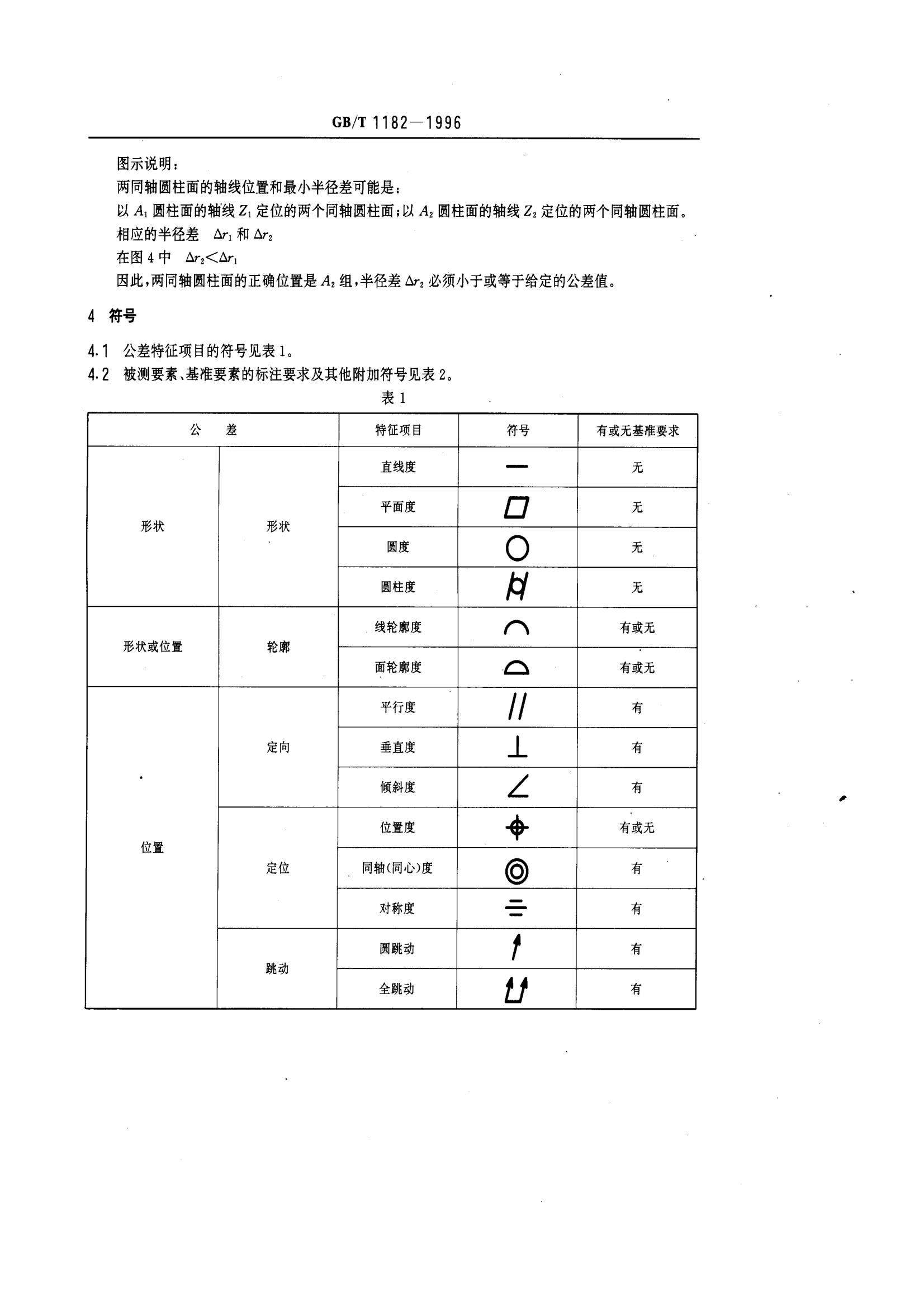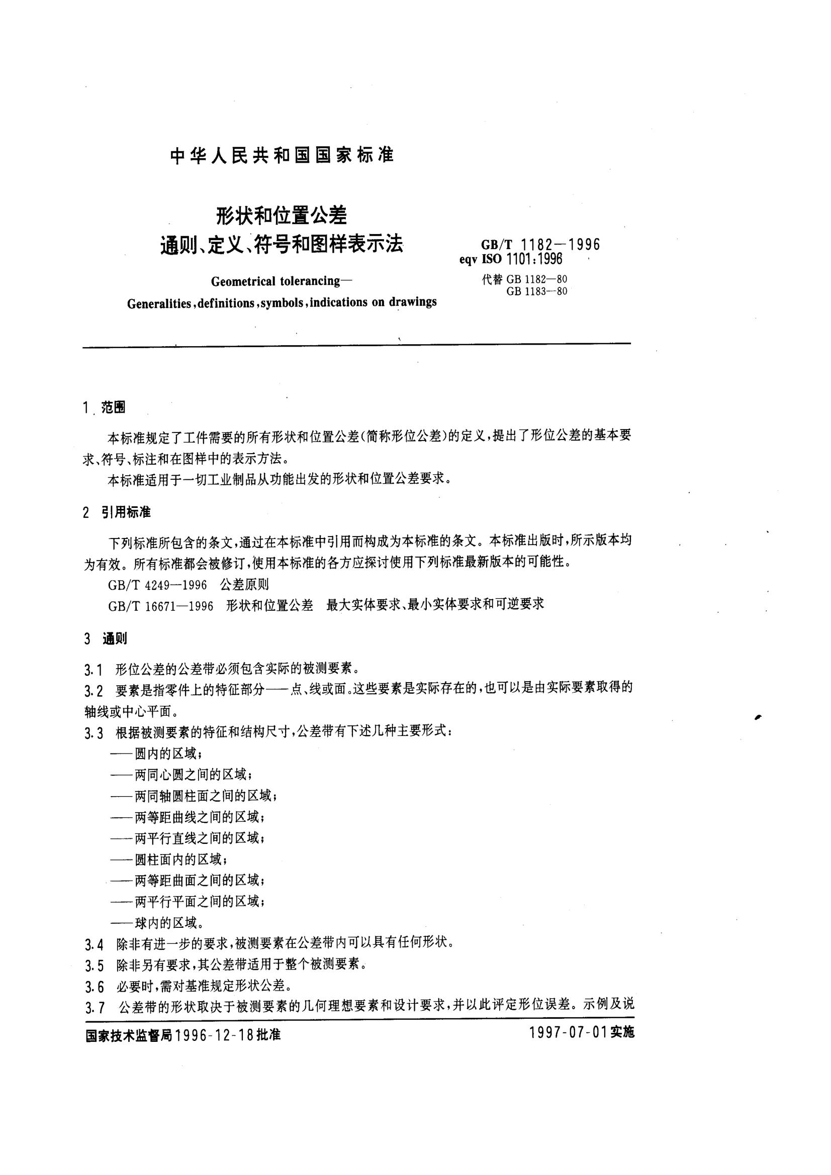 GBT1182-1996形狀和位置公差通則、定義、符號和圖樣表示法